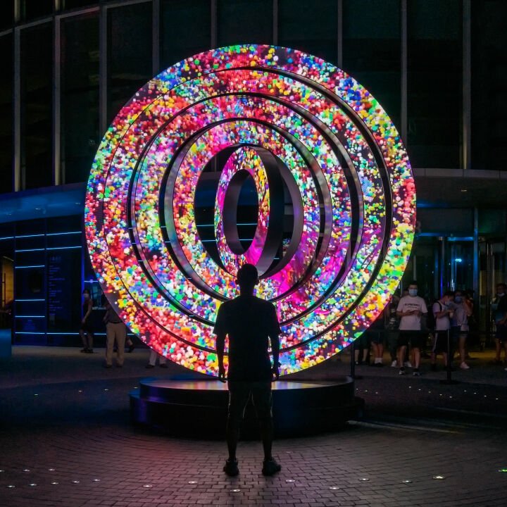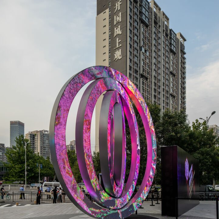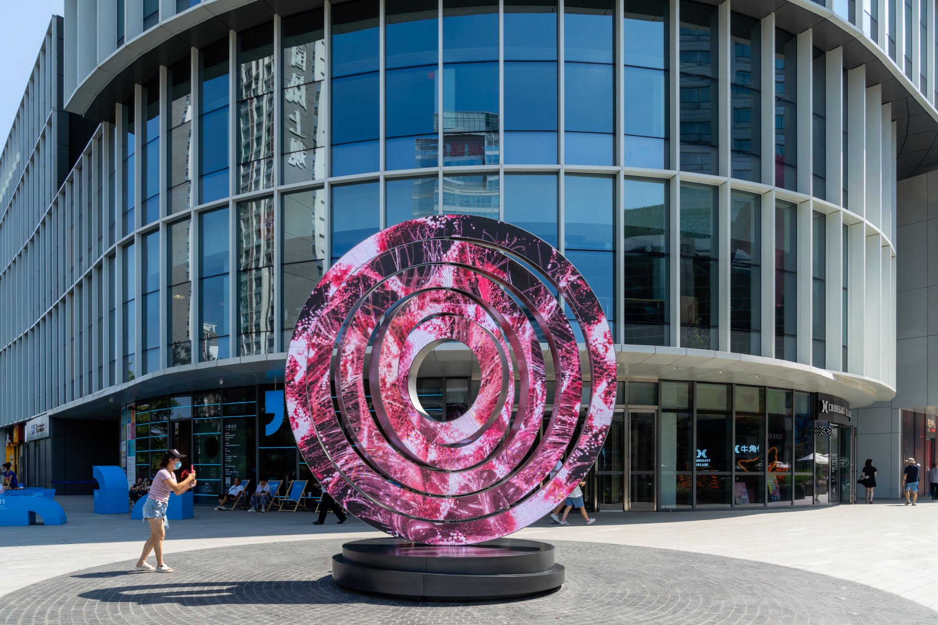 Standing at 4.5 meters tall and comprised of rotating concentric rings, the Data Eye of Wangjing is a permanent site-specific landmark for the Wangjing Laneway, a mixed-use development in Beijing, China. UAP worked with the client from the onset of this project delivering the curatorial vision, design, fabrication and installation.