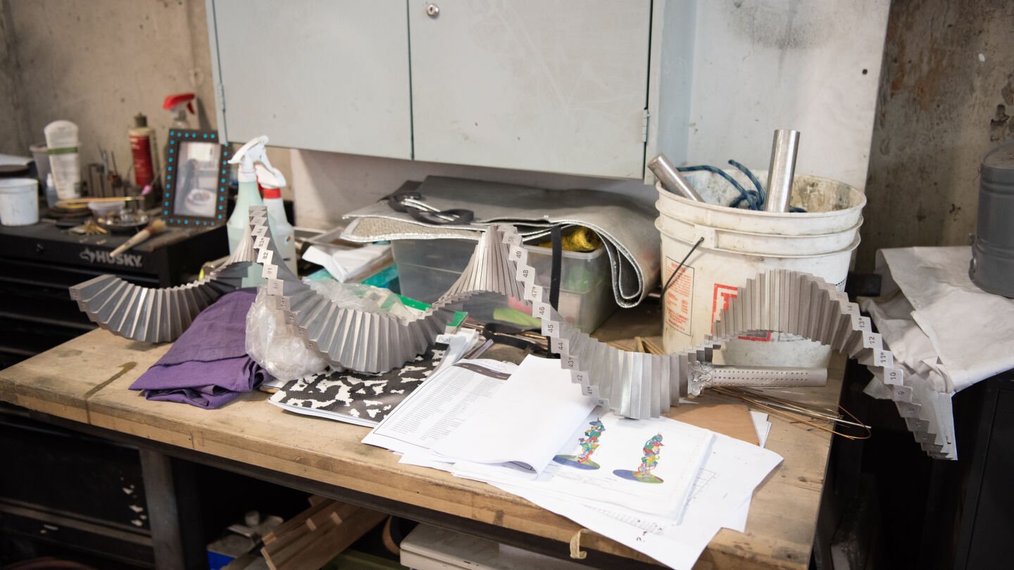 The first thing I noticed when working on Yellin’s piece was the gigantic tree coming out of the waves. To me, Mother nature is both trees and water. It was difficult finding a way to sand the base for the waves to really pop. Even the animals, brain, mushrooms, rabbits, phone and symbolic gesture of flowing milk, astronauts, the moon, and so many incredible parts of this project were difficult to piece together. It was challenging, but in the 40 years of working on sculptures, this is one of my favourites.