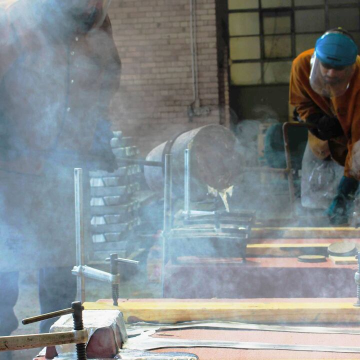 Designed and fabricated by UAP, each of the elements were realised by pouring molten aluminium into hand-crafted moulds, yielding a truly unique texture over the 10,000 sq ft (929 sq m) area. The result creates a distinct and vibrant atmosphere which aligns with the architect’s vision of creating dynamic spaces for the public.