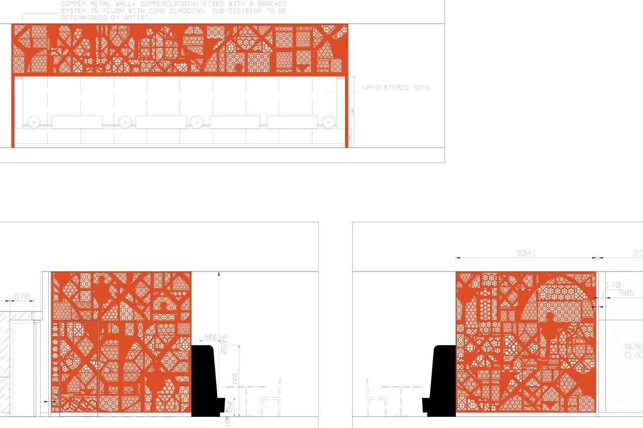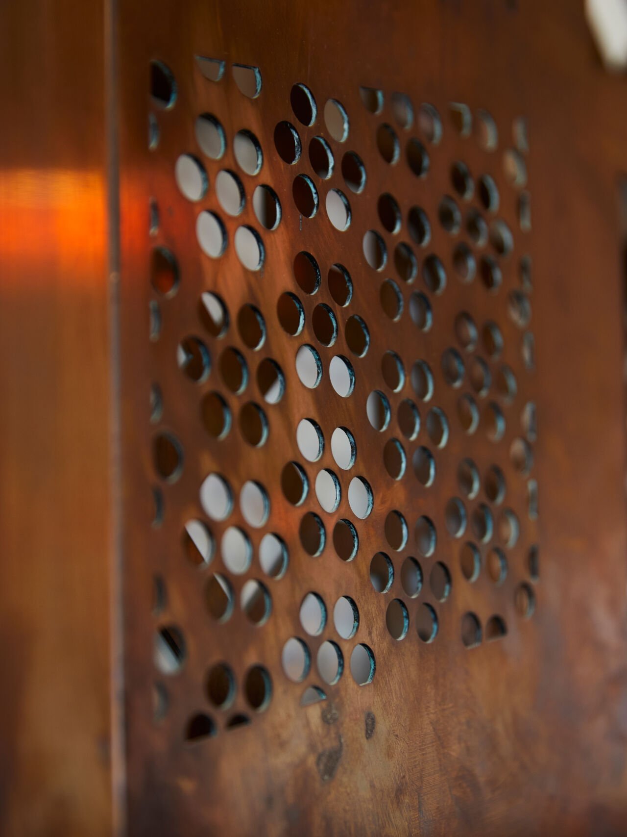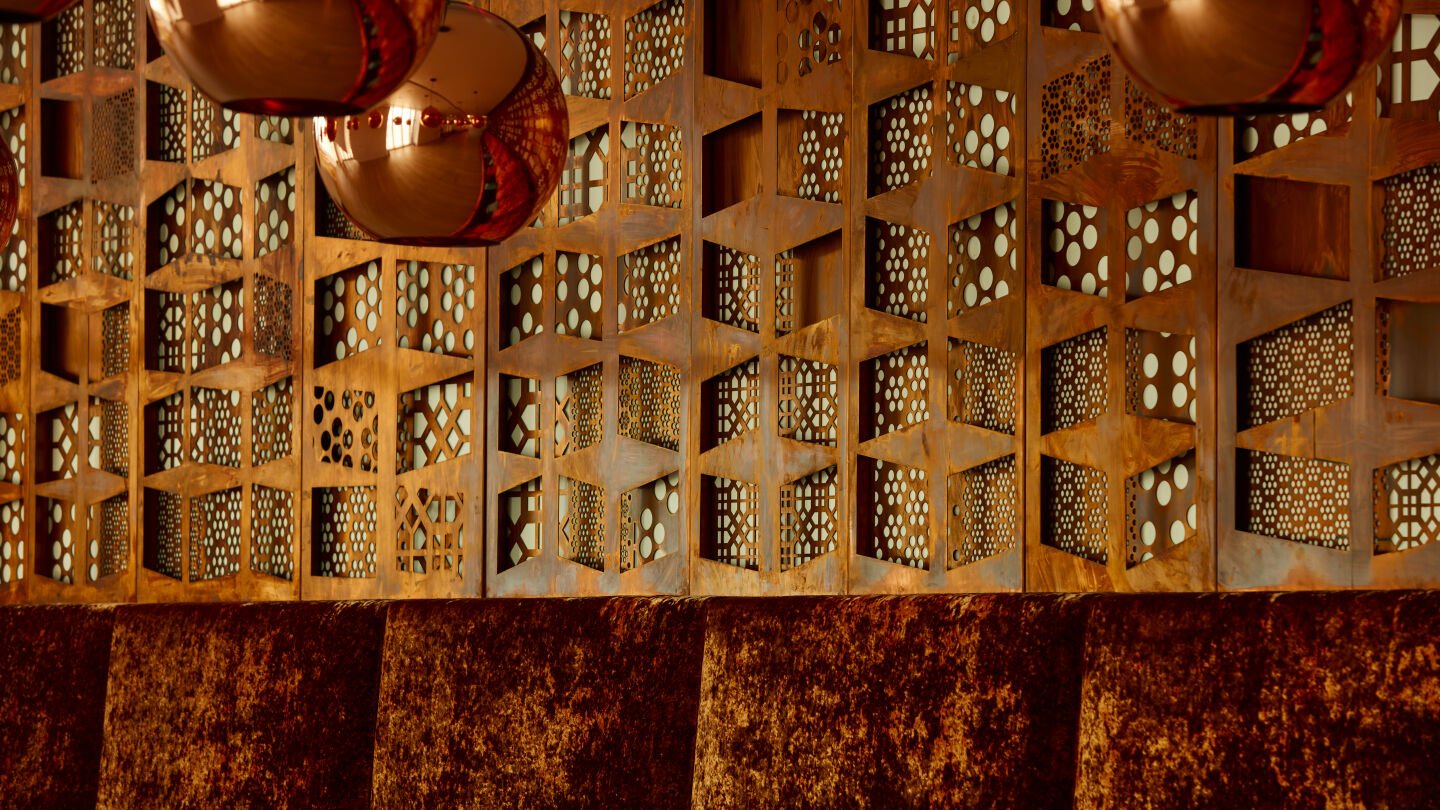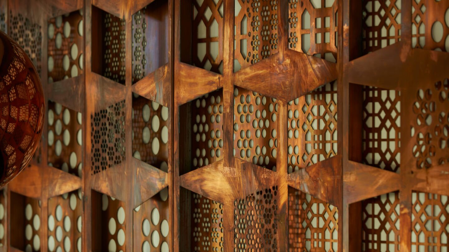 Through the work Mashrabiya, Sami Al Turki explores the intricate shadows and patterns typically captured in his photography, translating them into layers of ornate copper that naturally patina over time. The outcome is an extraordinary shift in the artists' practice, realised to striking effect across multiple floors of Ithra.