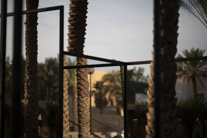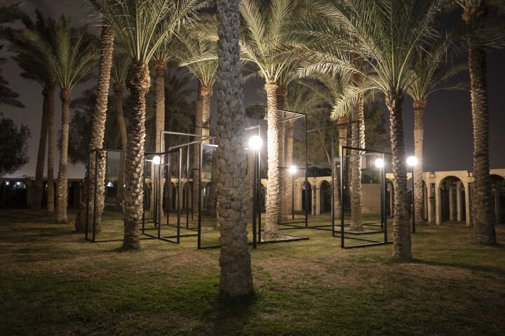 Amid the ever-changing light, the steady presence of streetlamps and surrounding plants grounds the installation, symbolizing the balance between industrial and natural elements. Morjana becomes a space where reality transforms, perspectives evolve, and fleeting illusions contrast with enduring surroundings.