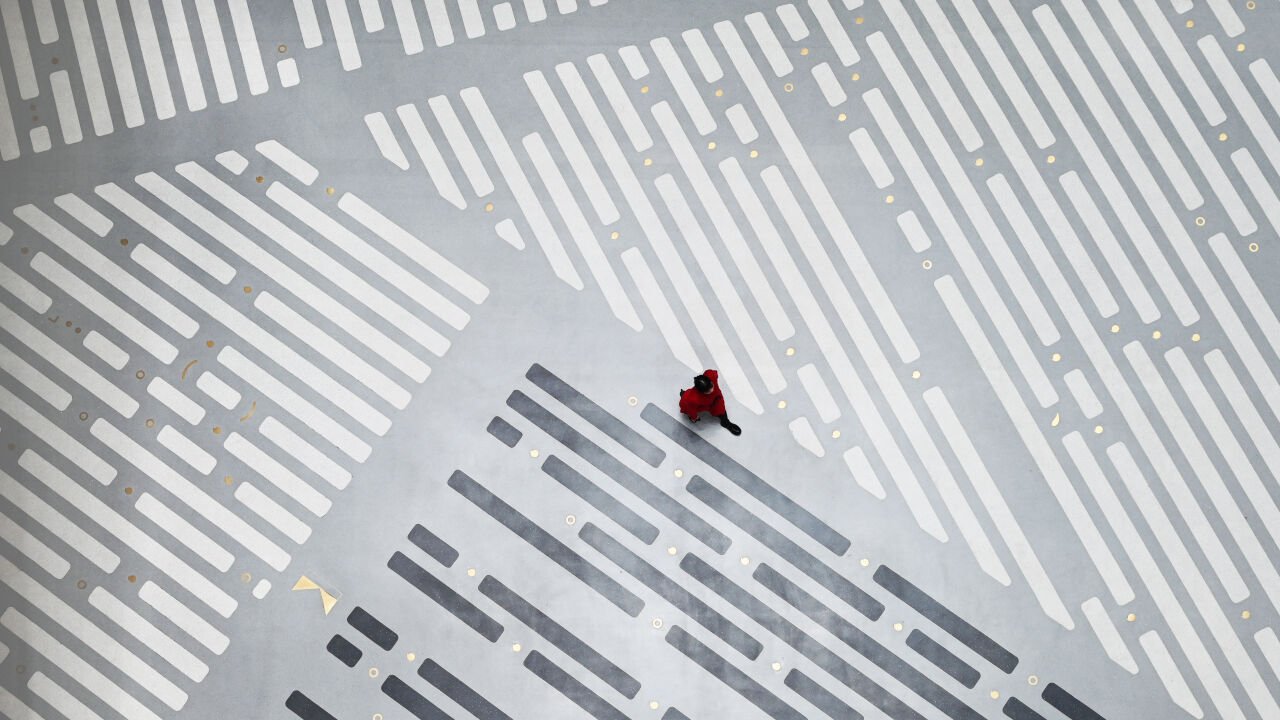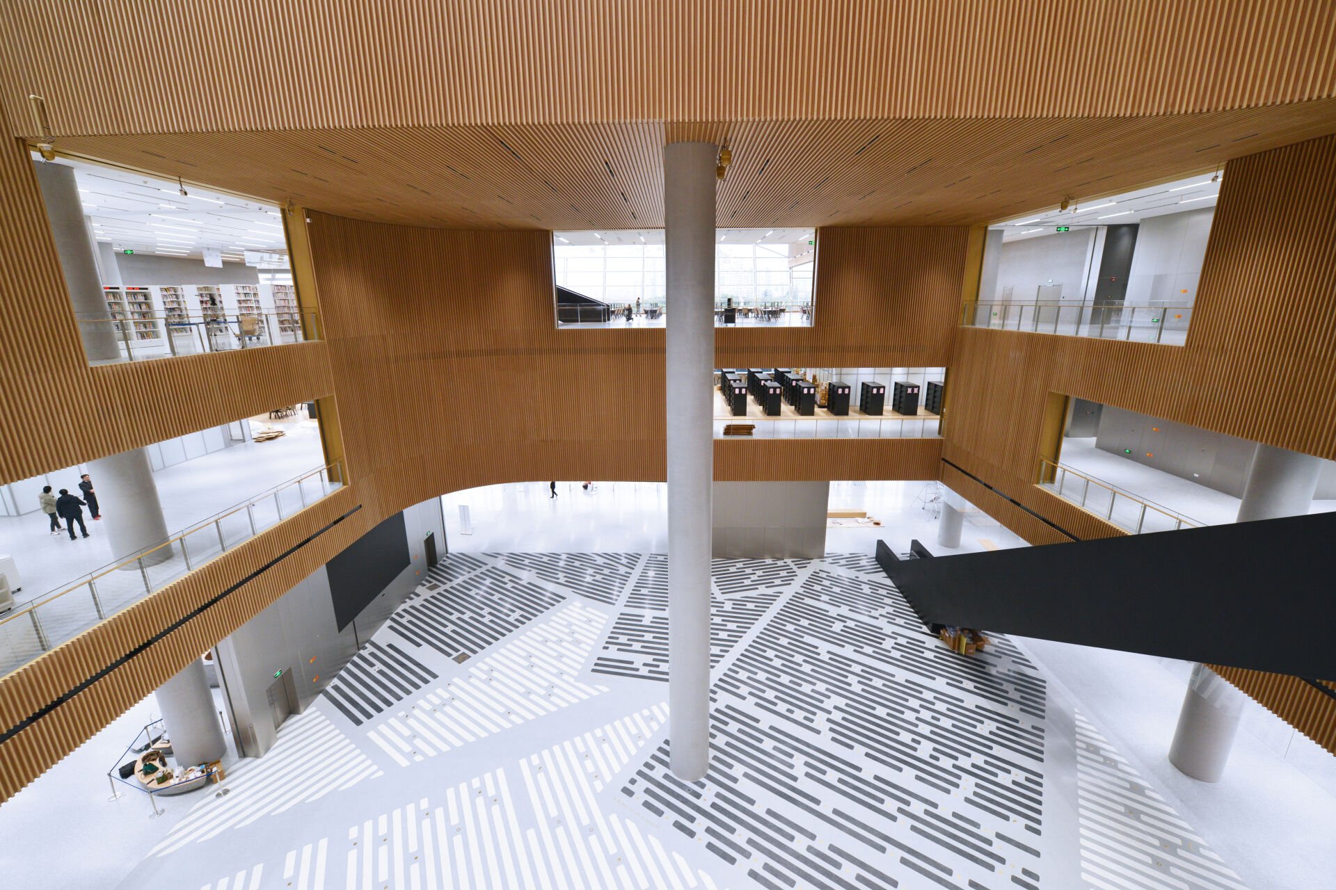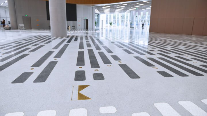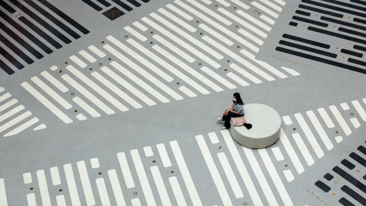 Regarded as one of China's most important and pioneering figures, his works are included in the textbook 'Art', a compulsory reading for grade nine students in China. For Passing of the Seasons, Shen Fan pivots the timeline towards the modern era, when newspapers were the primary medium for disseminating information. The several hundred square meters of terrazzo patterns that make up his artwork are abstract interpretations of newspapers, all drawn from passages closely related to the history and collections of the Shanghai Library East. The dynamic brass decorations are the punctuation marks that contributed to the development of the modern Chinese language.