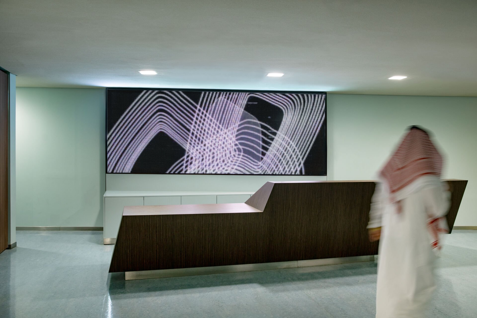 UAP joined the Ithra project team in 2010 in a curatorial capacity, to work alongside Mona Khazindar in the early planning stages of the integrated art program. Ithra and Mona’s vision was ambitious, to procure and commission twelve highly site-specific artworks that spoke symbiotically to Ithra’s core philosophy and architecture, designed by the Norwegian studio Snøhetta. UAP also worked with Aramco and the King Abdulaziz Center for World Culture to oversee the delivery and install of these incredible projects.