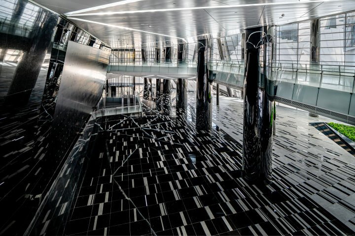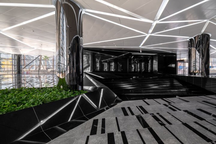 In collaboration with Nikken Sekkei and Samsung E&C, UAP | Armetal played a key role in developing this flagship project by providing a range of precision-engineered architectural elements. These included Black SST column cladding, stainless steel handrails, glass balustrades, back-painted glass column cladding, stainless steel elevator architraves, and metal and glass ceiling systems.