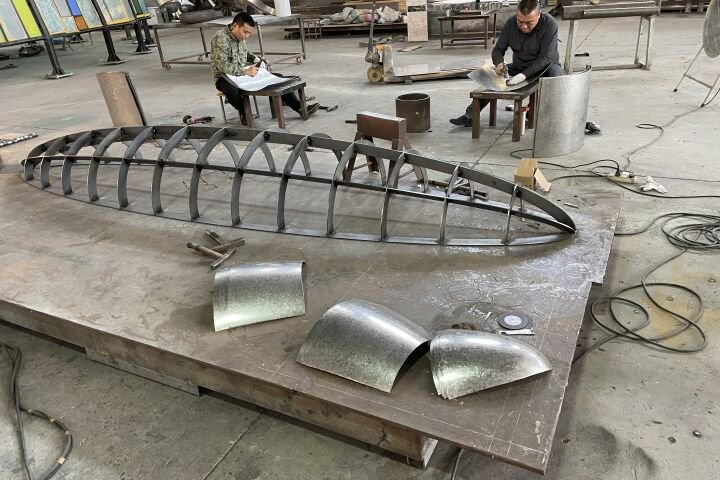 The UAP curatorial team worked with Lee to align with Masdar City's principles and considered eliminating things like concrete footings to reduce this artwork's carbon footprint. Instead, it now provides a small inhabitable waiting space for visitors made possible by using Glassfibre Reinforced Concrete (GRC) suitable due to its low thermal absorption properties.